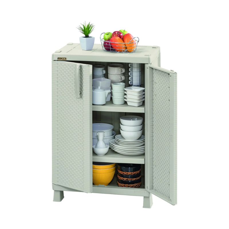 Armario Mediano con textura Rattan, con 2 entrepaños ajustables que resisten hasta 25 Kg cada uno. Fácil de armar, mover y limpiar. Con la resistencia y beneficios del plástico. Excelente capacidad interior, con orificio para uso de candado para mayor seguridad. Apariencia artesanal y elegante que acompaña tus espacios de la mejor manera. Beneficios Manijas verticales. Mejor agarre y diseño. 2 Entrepaños regulables. Resiste hasta 25 kg por entrepaño. Fácil de mover. Fácil de armar.