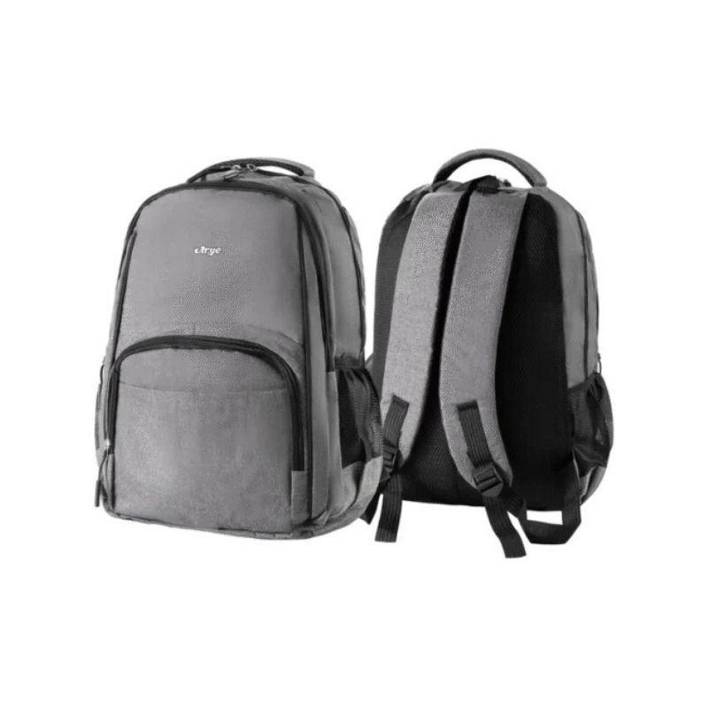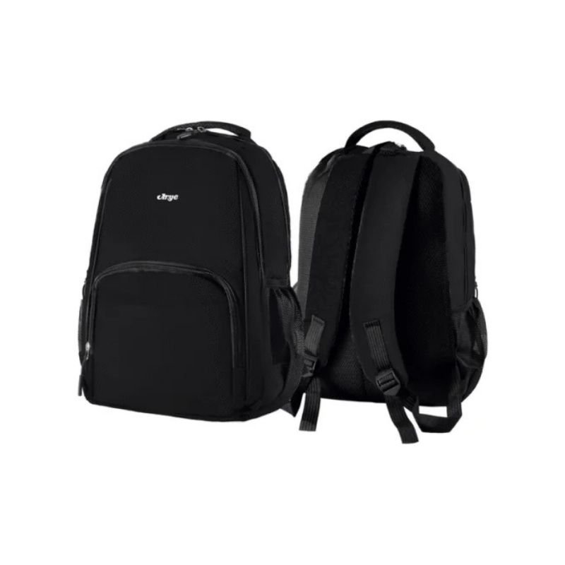 Dos reparticiones grandes. 2 bolsillos delantero con cierre frontal.  Manija acolchada y presilla sujetadora superior. Correas acolchadas. Colores: negro, gris y azul. Medida aproximada 46x32x20 cm.