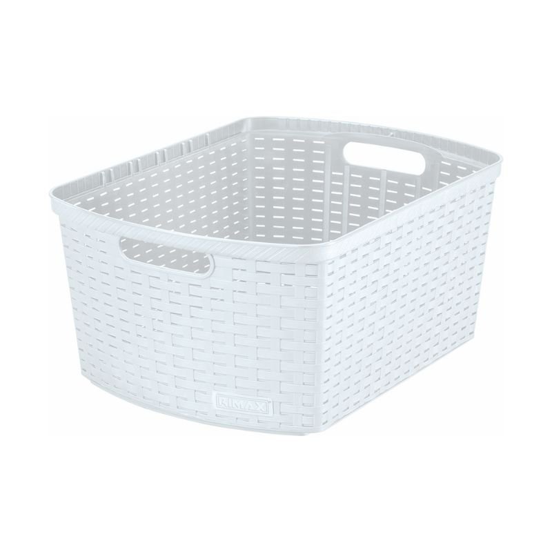 Canasta tejida con apariencia Rattán. Ideal para organizar y decorar. Tiene manijas en sus dos extremos y capacidad de 12 Litros. Ideal para organizar en closets, baños, cocina, cuartos, entre otros. Colores de tendencia para el hogar. Beneficios Con tejido perforado que imita el tejido artesanal.