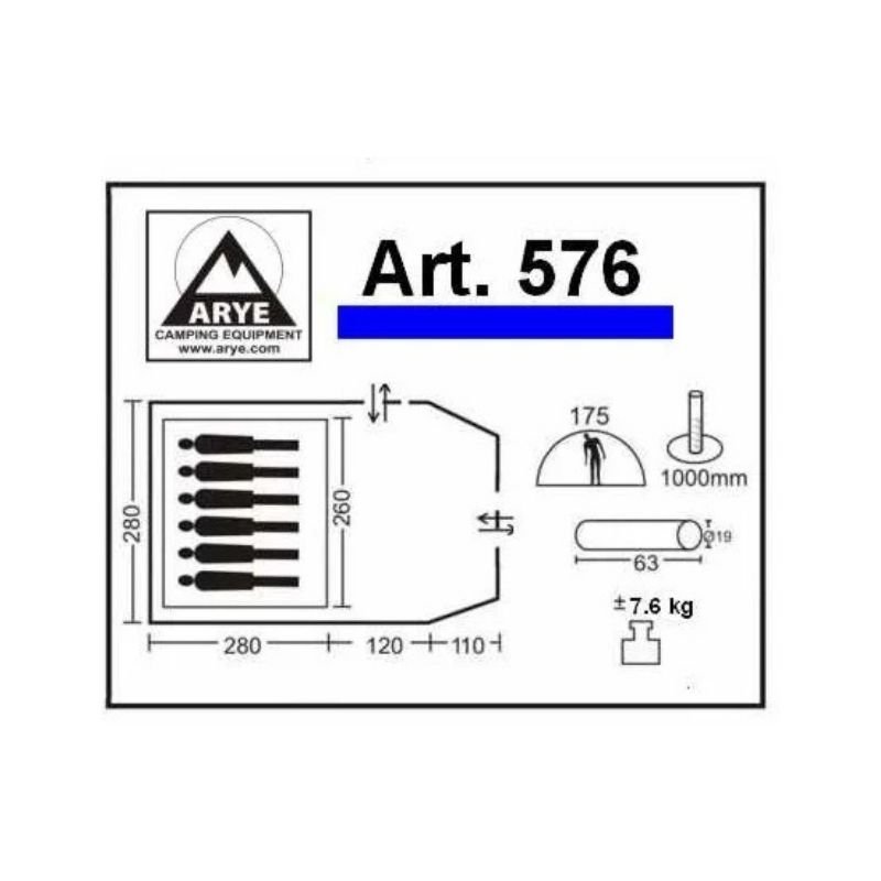 280+120+110x280x175, peso 7.60 Kg. Sobretecho y avance poliéster taffeta 190T aluminizado, mosquitero, estructura de fibra de vidrio de 7.9mm, piso de lona cubretodo impermeable, ventana trasera. 1000mm columna de agua. Seam tape: costuras termoselladas a prueba de agua.