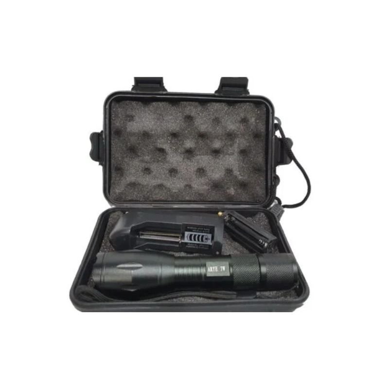 13.5 cm de largo. Incluye cargador y portapilas. Cinco posiciones: alta potencia, consumo intermedio y bajo consumo, flash y pedido de ayuda (SOS). Presentación en caja de plástico.