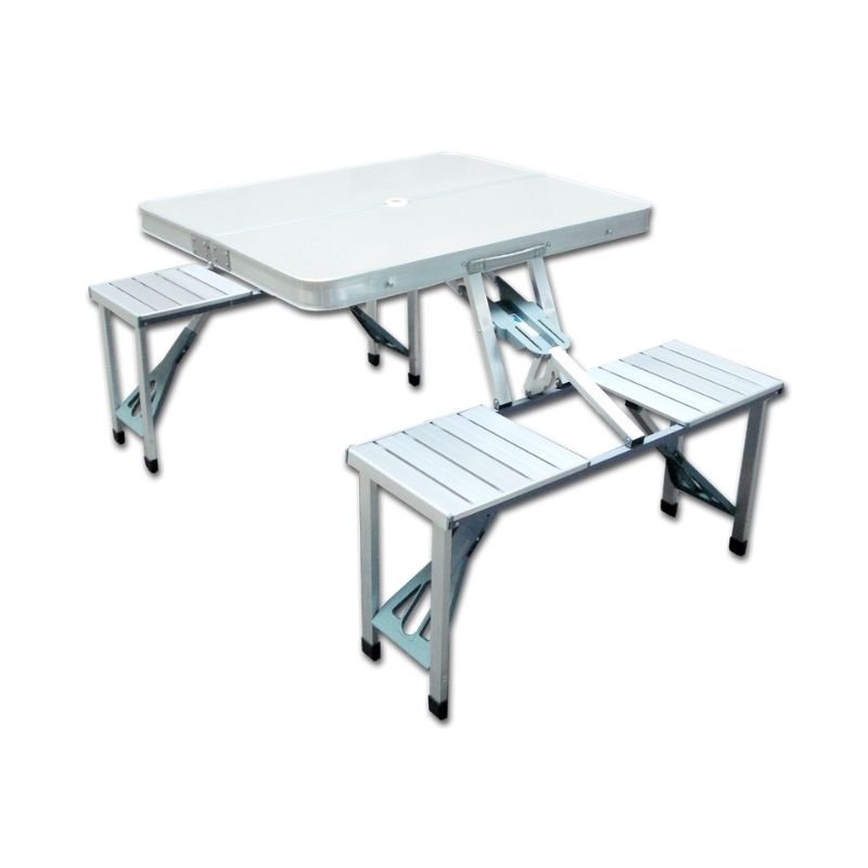 MESA DE CAMPING 85×65 CON 4 BANCOS INCORPORADOS
