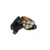 1 LED T6, 10 W. Incluye cable USB y dos baterías grandes (puede funcionar con una sola). Cuatro focos y dos iluminadores de LED. Cuatro funciones: encendido de dos focos centrales en alta potencia, dos focos laterales en alta potencia, cuatro focos en alta potencia, cuatro focos flash. Manteniendo apretado se encienden los iluminadores de LED que tienen cuatro funciones: alta potencia, baja potencia, luz roja, luz roja flash. Presentación en caja de cartón.