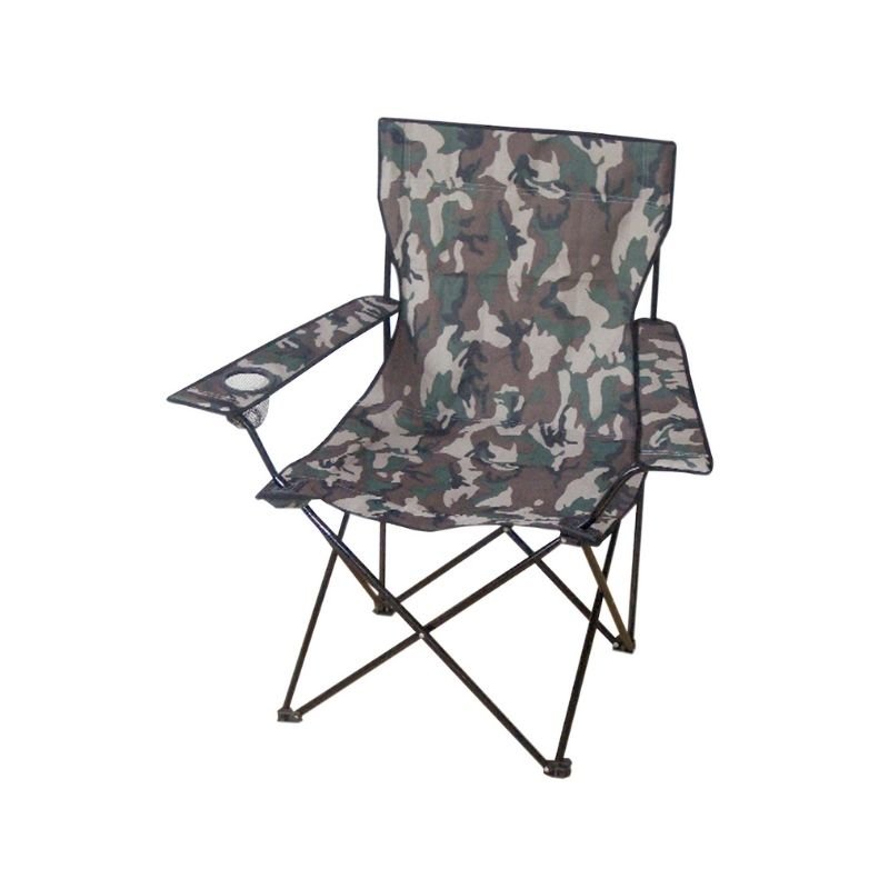 SILLA CAPITÁN CAMUFLADA, c/posavasos, nylon Oxford 600D, plegable y con bolsa de tela. Soporta 85/90 Kg.